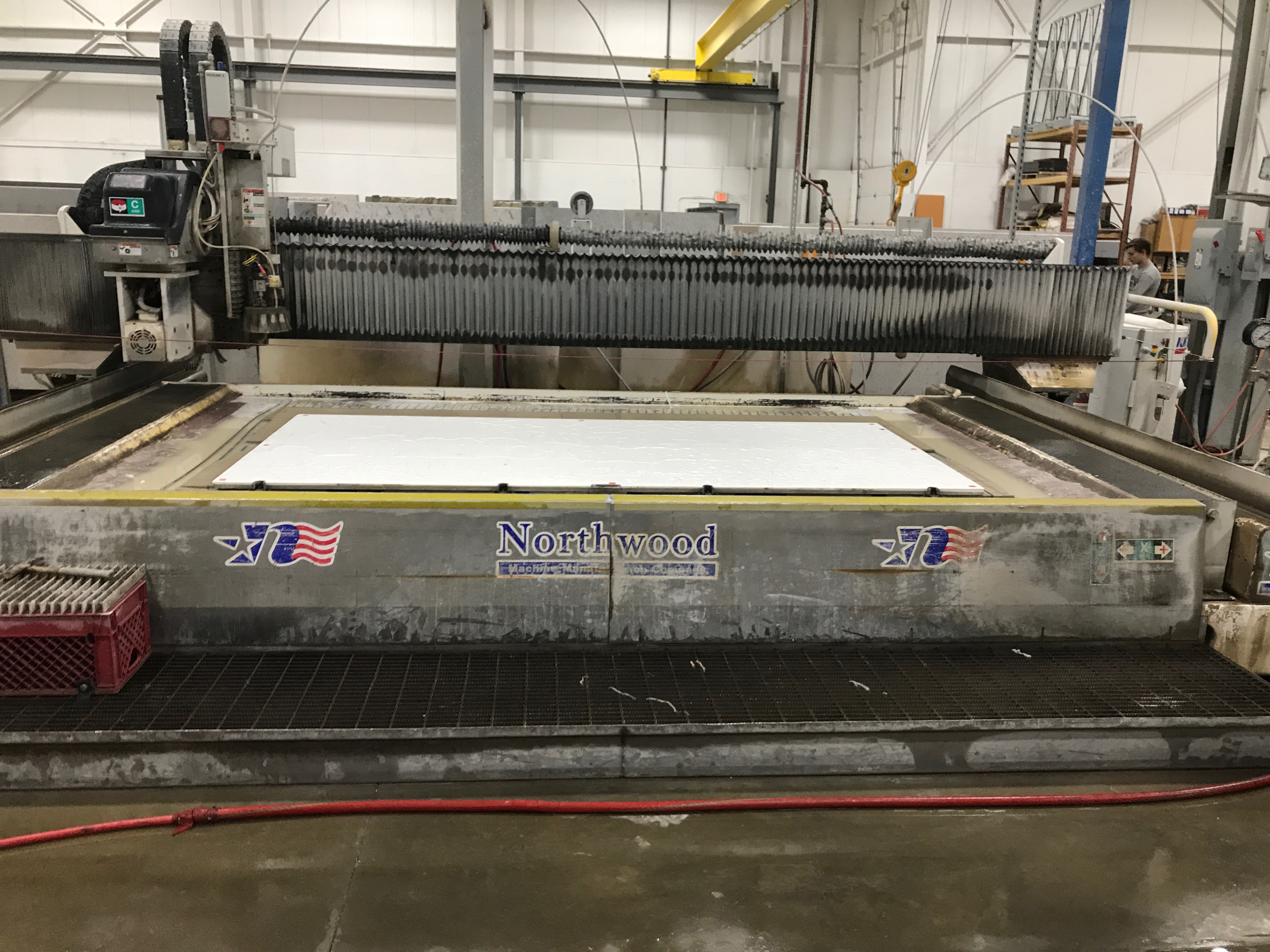 The Northwood SawJet is controlled by a FANUC Servo control system closely integrated with a 40mm ground ballscrew This combination is designed to provide years of trouble free operation and also provide the highest level of accuracy. Northwood’s interface software and machine control allow an operator to quickly load and run part programs, as well as perform other machine tasks. In addition, Northwood’s industry-leading StoneVision(tm) 3.0 software, coupled with Alphacam(tm) software by Vero Software, takes the difficulty and risk out of processing drawings or digitized data into machine toolpaths.