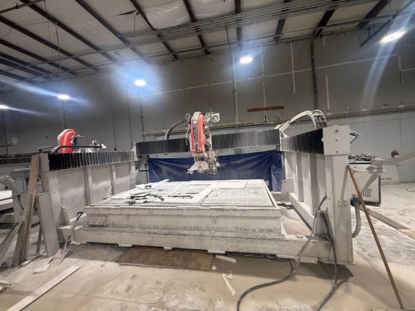 This sawjet design includes high rails and bellow covered ways, protecting the SABERjet from the harsh elements of stone fabrication and maximizing machine uptime/longetivity.