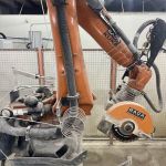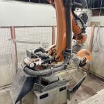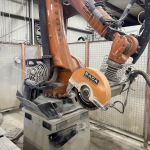 • At the heart of the Robo SawJet 2.0 lies a robust foundry-grade KUKA KR 210 robot, equipped with a powerful 26HP saw motor and a 50HP H20 waterjet. Renowned for their high reliability and precision accuracy, KUKA robots are the go-to choice for the most demanding applications, including those in automotive plants and aerospace. Unlike custom-built gantry machines, robots require significantly less maintenance. Annual upkeep on the robot involves greasing (2) zerk fittings, and an oil change is recommended at either 10,000 hours of use or after 5 years, whichever comes first. Maintenance for the waterjet on the Robo SawJet is streamlined for simplicity. The waterjet lines are easily accessible on the exterior of the robot, eliminating the need to navigate through conventional cat tracks as seen with some competitors. This user-friendly design is complemented by BACA’s Waterjet Made Easy exchange program.