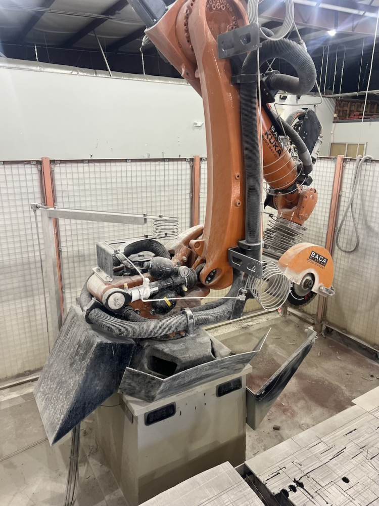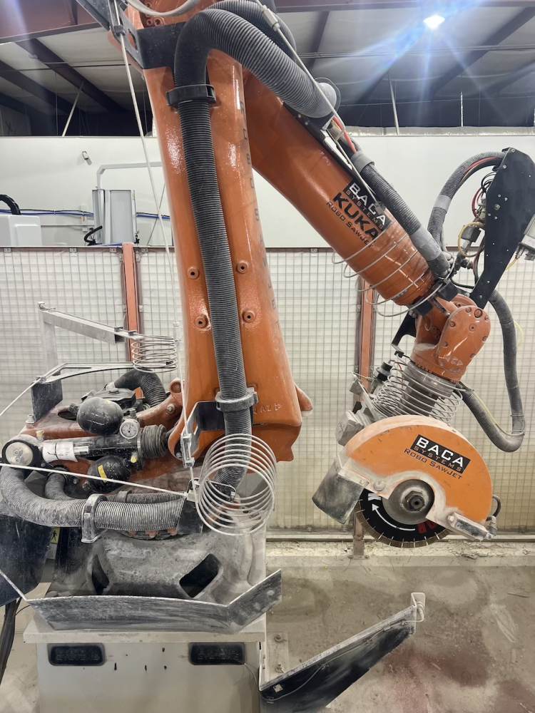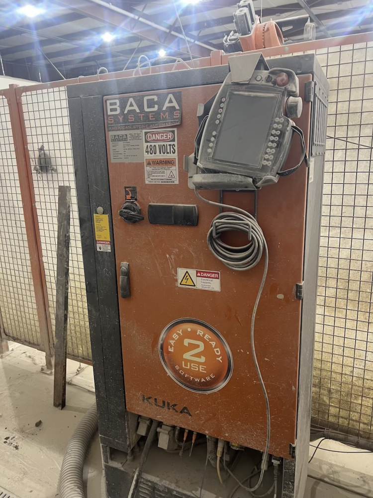 • At the heart of the Robo SawJet 2.0 lies a robust foundry-grade KUKA KR 210 robot, equipped with a powerful 26HP saw motor and a 50HP H20 waterjet. Renowned for their high reliability and precision accuracy, KUKA robots are the go-to choice for the most demanding applications, including those in automotive plants and aerospace. Unlike custom-built gantry machines, robots require significantly less maintenance. Annual upkeep on the robot involves greasing (2) zerk fittings, and an oil change is recommended at either 10,000 hours of use or after 5 years, whichever comes first. Maintenance for the waterjet on the Robo SawJet is streamlined for simplicity. The waterjet lines are easily accessible on the exterior of the robot, eliminating the need to navigate through conventional cat tracks as seen with some competitors. This user-friendly design is complemented by BACA’s Waterjet Made Easy exchange program.